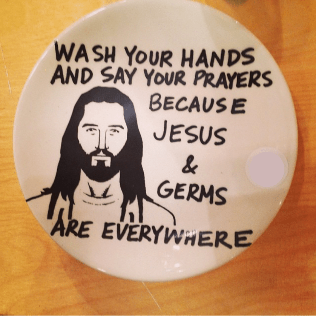 I have a soap dish that reads, “Wash your hands and say your prayers, because Jesus and germs are everywhere.” I bought it a few years ago as a joke, thinking lightheartedly about the presence of germs. Yet now, it serves both as a constant reminder of what I fear and the one who tells me not to fear. Germs may be everywhere (behind that mask, on the railing of those stairs, on your child’s sticky hands), but Jesus is everywhere too. So yes, I fear, but I also have faith that God sits with me in my fear. In scripture, time after time, God appears to mere flawed, fearful humans such as ourselves and proclaims: “Do not fear, for I am with you. Do not be afraid, for I am your God” (Isaiah 41:10). What we often fail to see in these verses is that the Bible doesn’t say “do not fear” because there is nothing to fear. No, God says, when we are fearful, God is with us. When we are fearful, God is beside us.