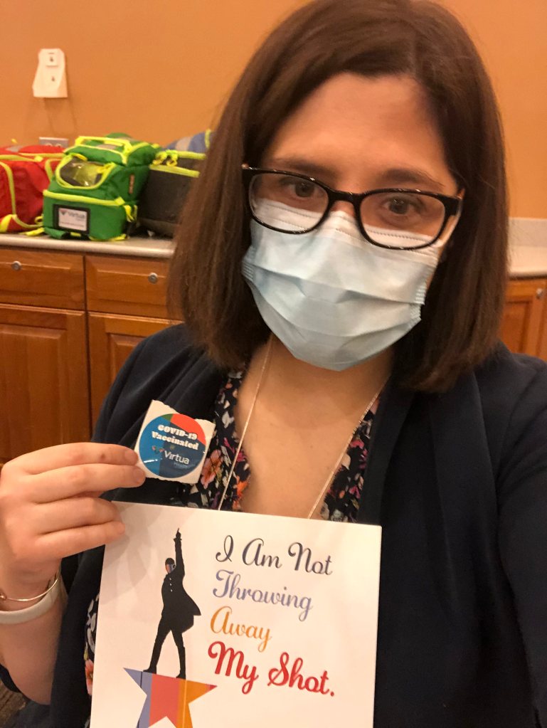 Taken after receiving the 1st dose of the COVID-19 Vaccine (with appreciation for Virtua Health’s clever sense of humor)
