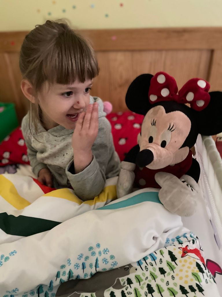 As the two of them headed back to bed, I thought to myself: so …DOES Minnie talk to her when she’s awake?”