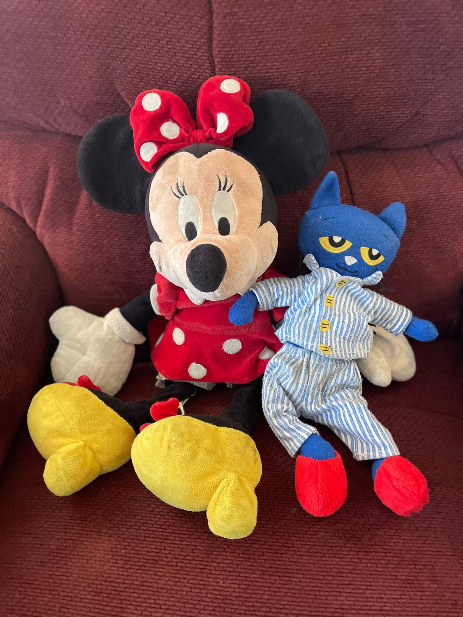 I am intrigued by how children choose their favorite stuffy. For some, the attachment is made by choice. For some, the attachment is made by being drawn toward one another. For some, the attachments change as he/she grows and finds new interests. I cannot say whether Minnie Mouse and Pete the Cat will be my children’s forever friends, but I can say that they were both drawn to their stuffies. When they found Minnie and Pete, they had eyes for no one else. At 4 years old and 18 months old, Susannah and Minnie, Simon and Pete are inseparable.