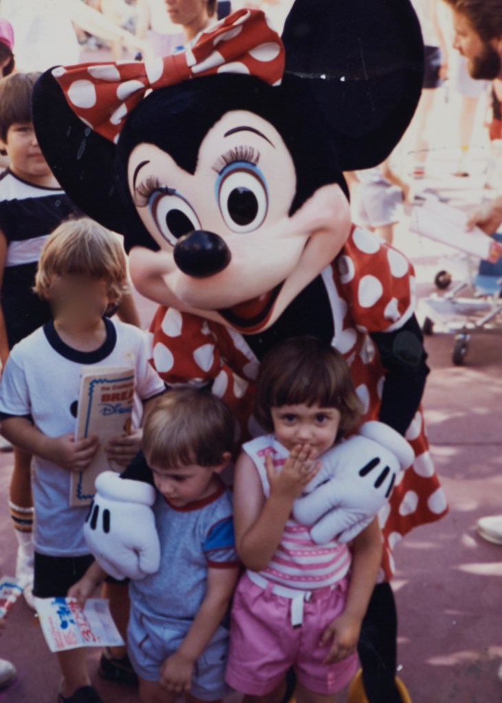 In preparation for my own family’s upcoming trip, I’ve been reminiscing by looking through old photographs. In flipping through the years, I watched my brother and I grow up. Here is one picture from each of our special trips to WDW and Disneyland.